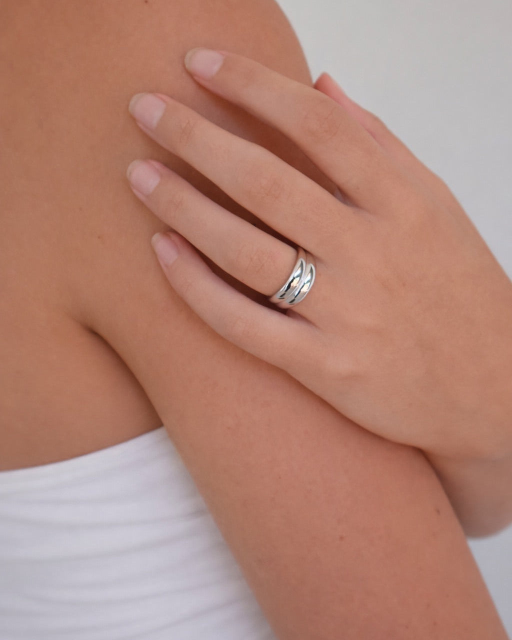 The Double Ring features a dual band design with a smooth, dome-shaped silhouette. Defined by modern elegance, this is a timeless piece you are guaranteed reach for again and again.